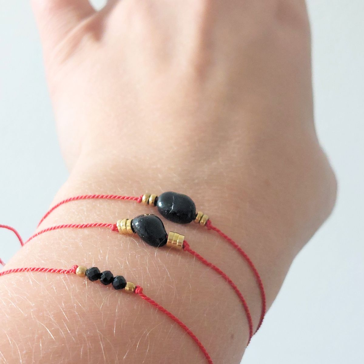 Kalava to czerwona, jedwabna nić z najpotężniejszym kamieniem ochronnym – turmalinem – w towarzystwie drobnych hematytów.
